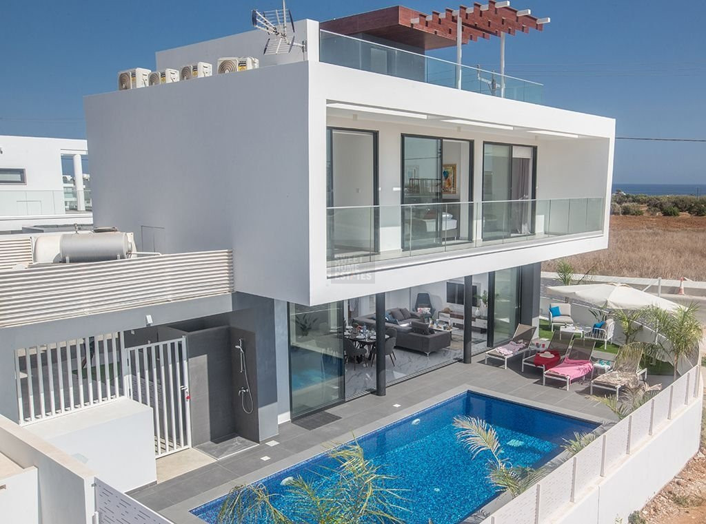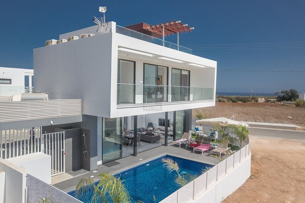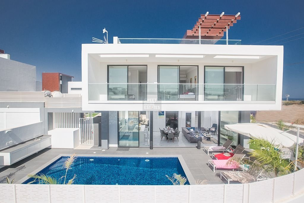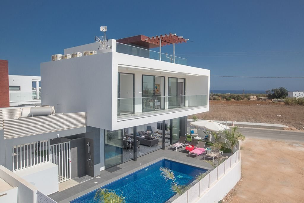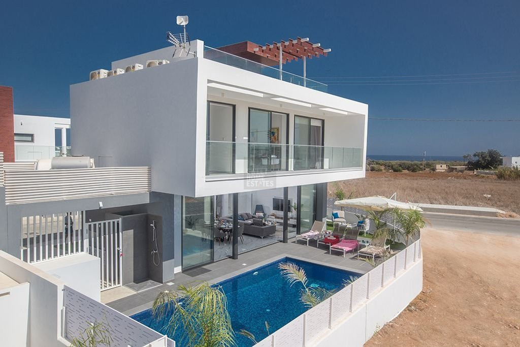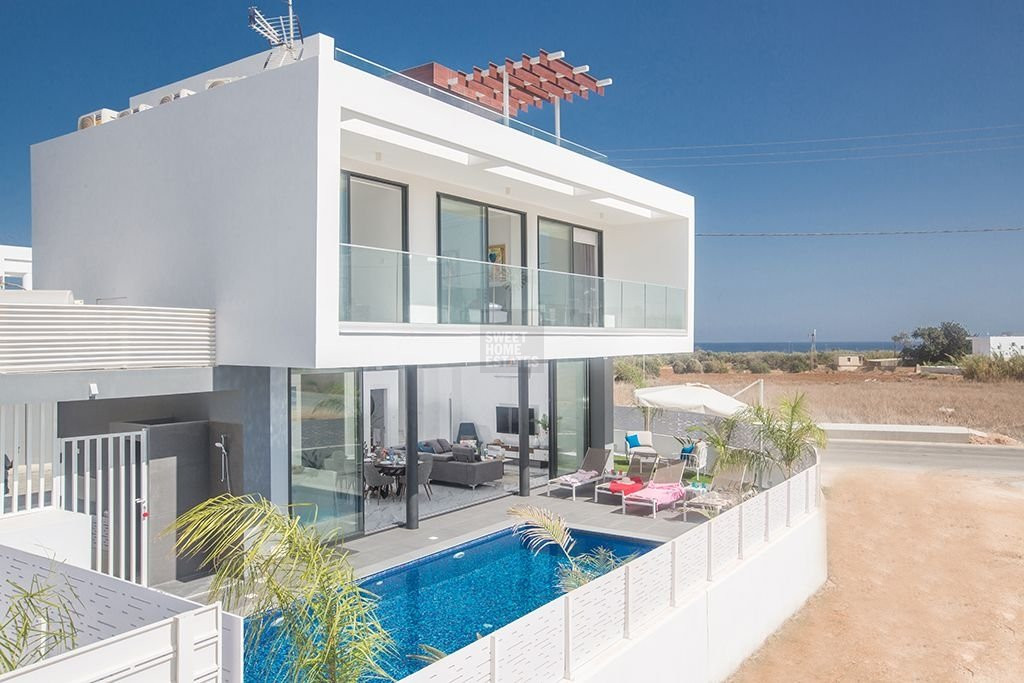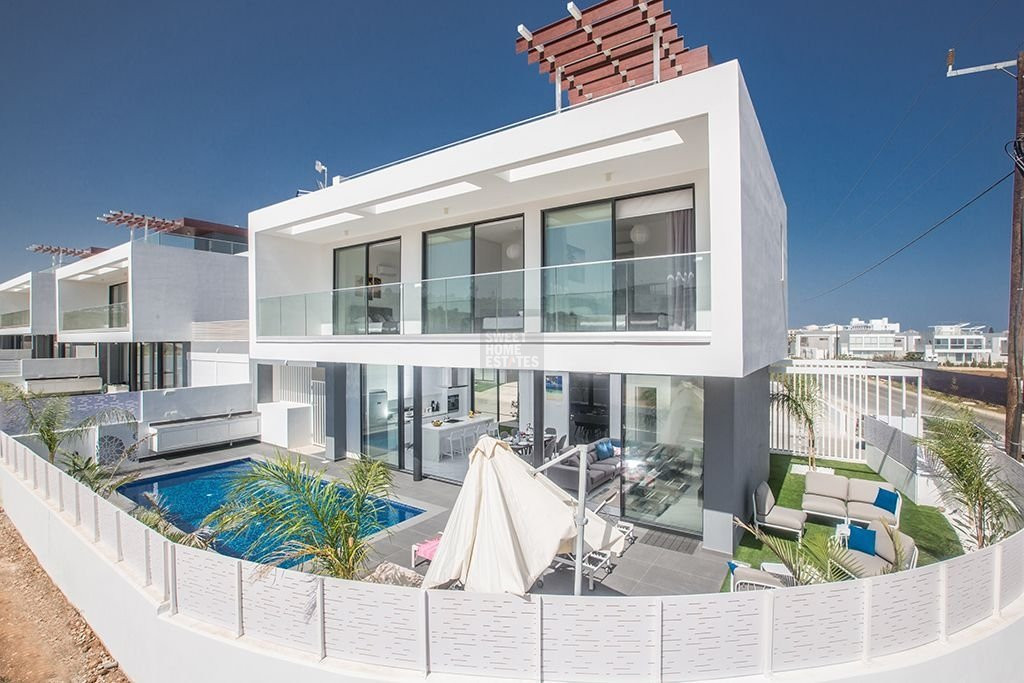 This supreme, contemporary, and functional villa is elegantly presented, finished to high specifications, and located in a prime position, near the beach, in the popular resort of Protaras.