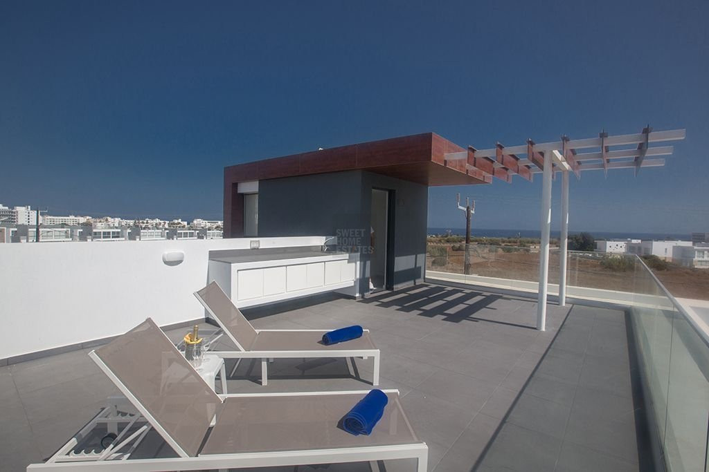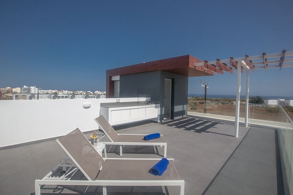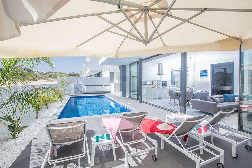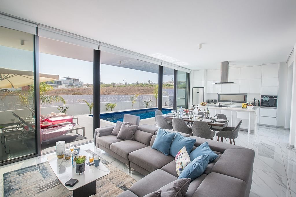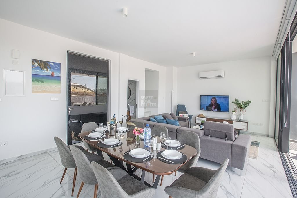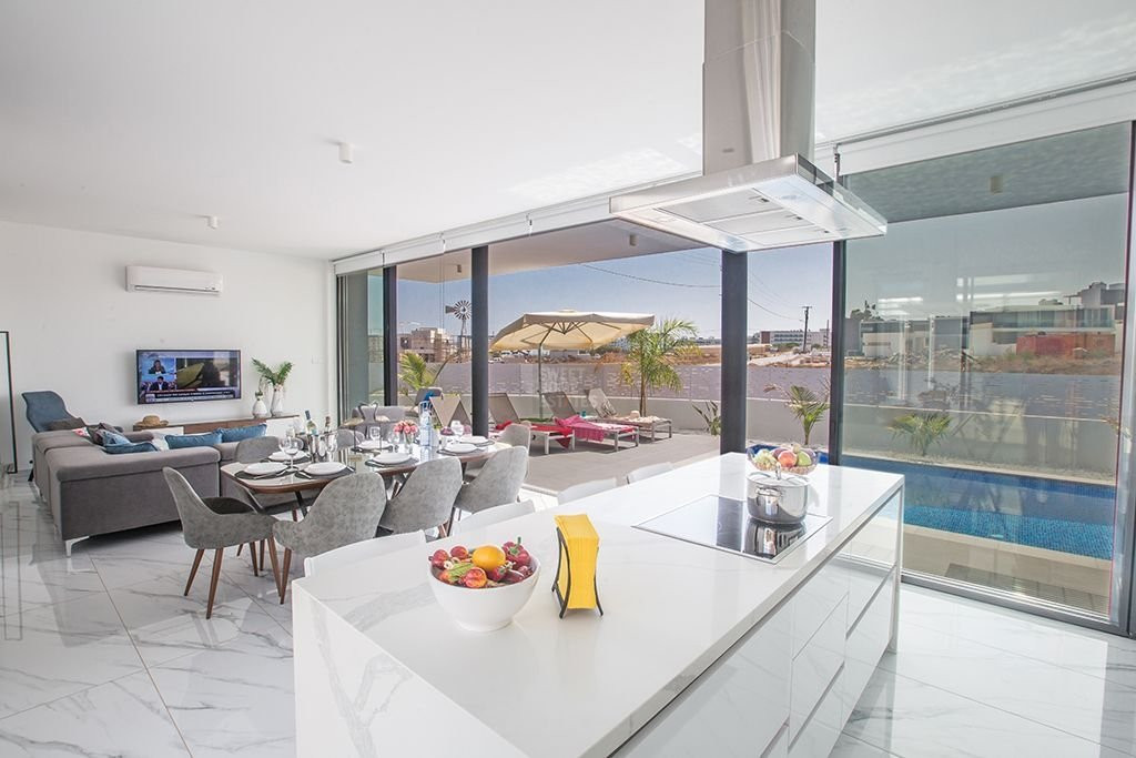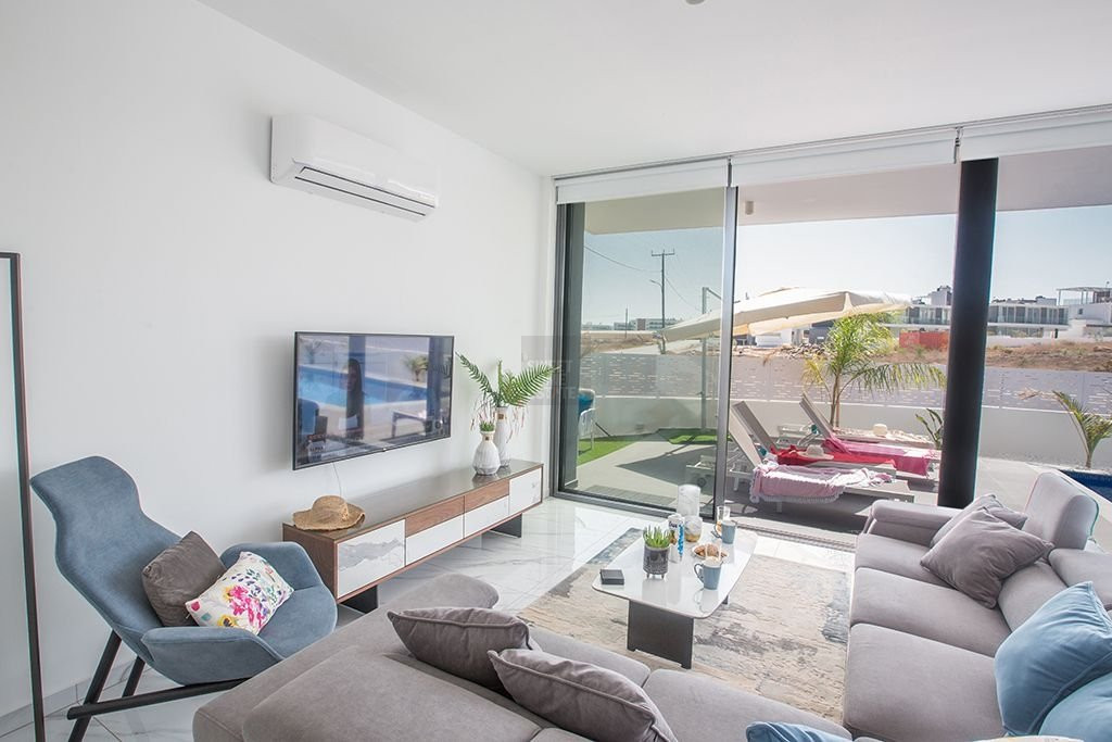 This supreme, contemporary, and functional villa is elegantly presented, finished to high specifications, and located in a prime position, near the beach, in the popular resort of Protaras.