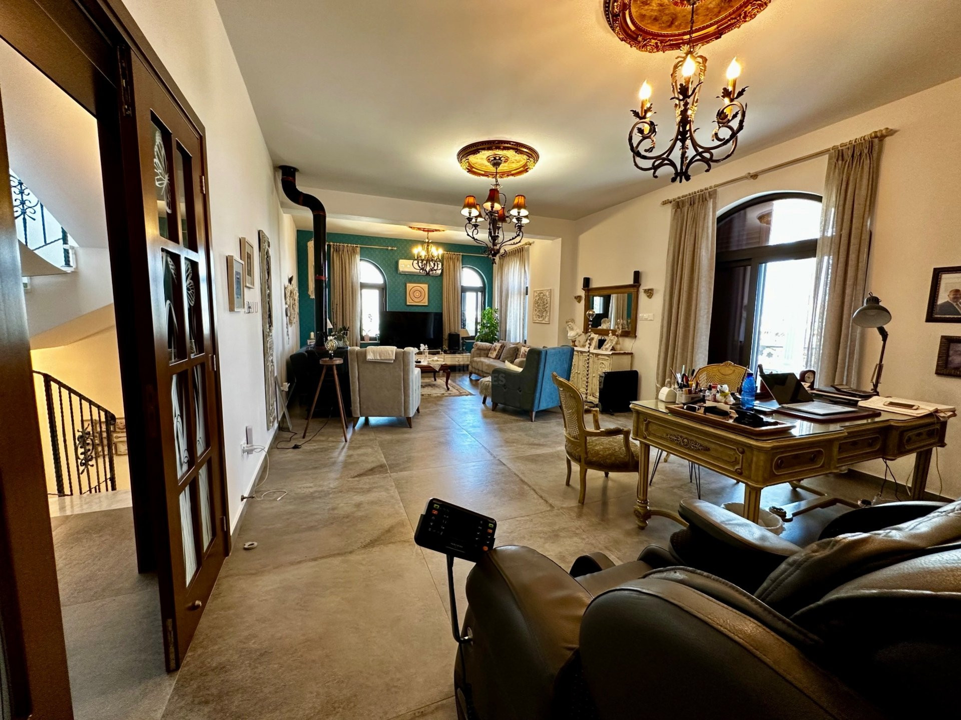 This stunning villa is a custom-built masterpiece situated in the peaceful outskirts of Saint Panteleimonas area in Paralimni. With a one-of-a-kind design and convenient location, this property offers the perfect balance of tranquillity and convenience, being only 4km from the beach and less than 1.5km from the town centre. The entrance, living room, kitchen, and dining room boast a luxurious design, while the basement, mezzanine, and first floor offer ample space for guests and work. The outdoor area is equally impressive, with a well-maintained garden, refreshing pool, built-in shower and toilet, outdoor BBQ area, and a fully equipped maid's room. Overall, this property is a true oasis that combines beauty, functionality, and comfort to provide a memorable experience.