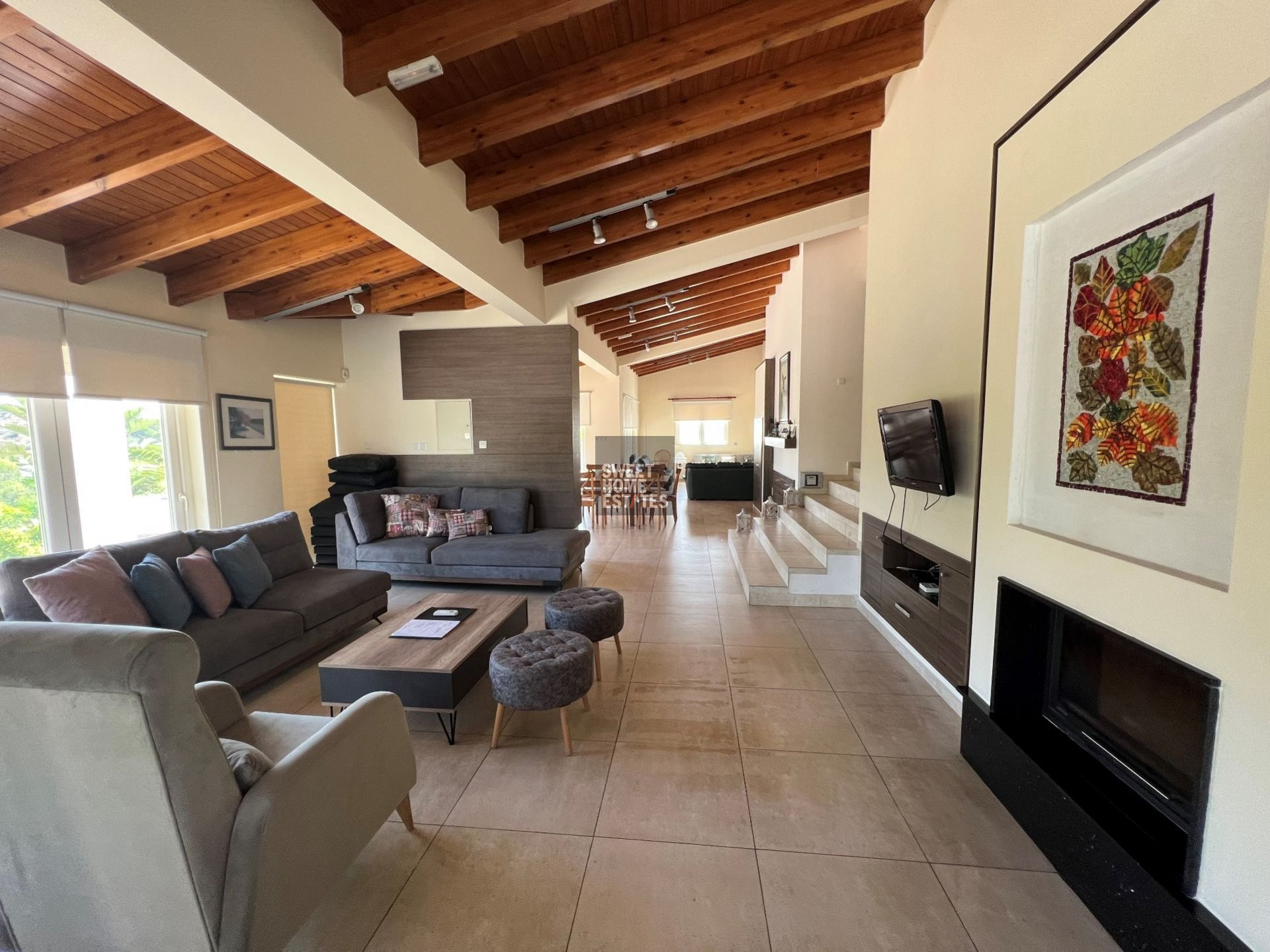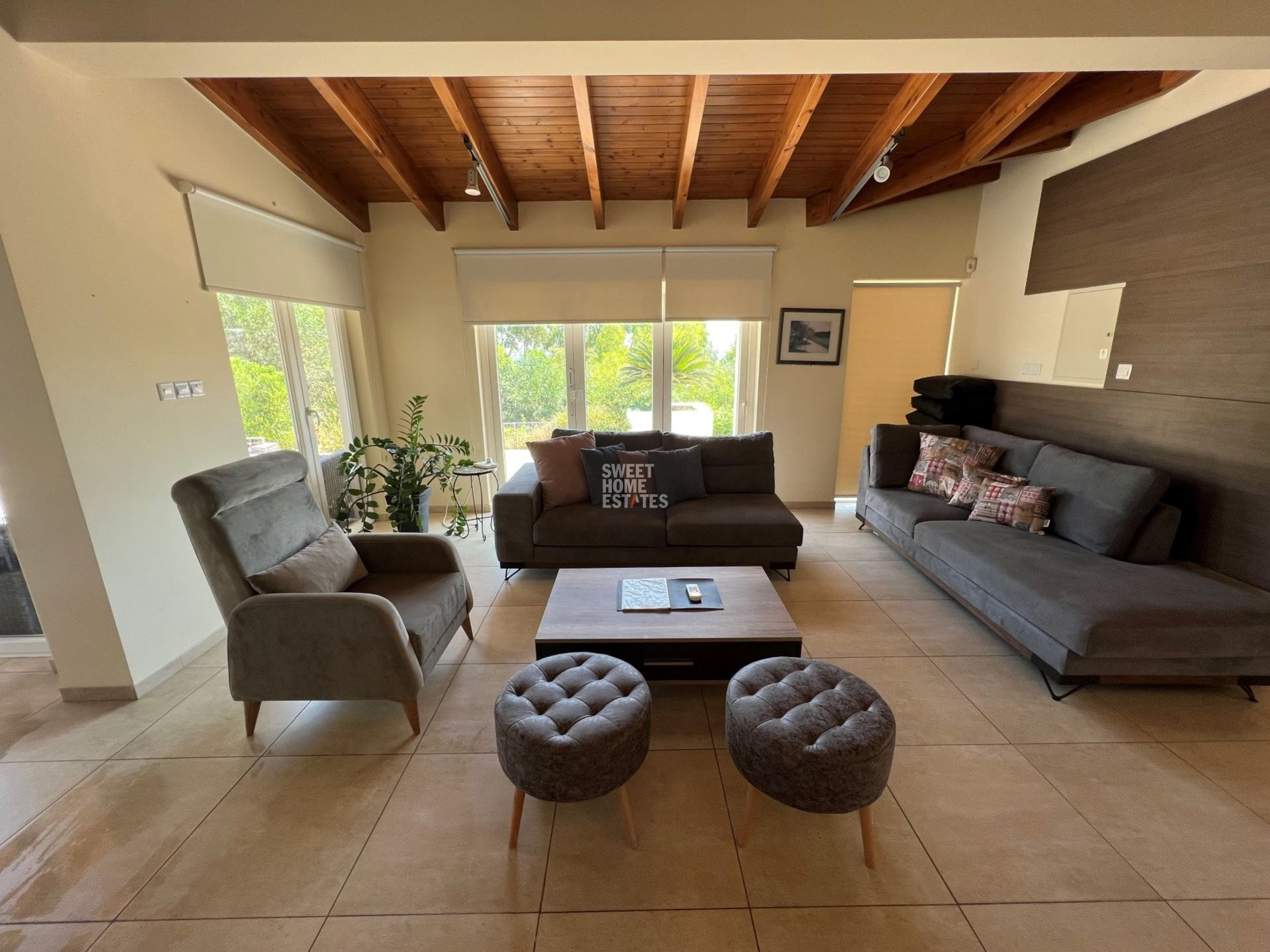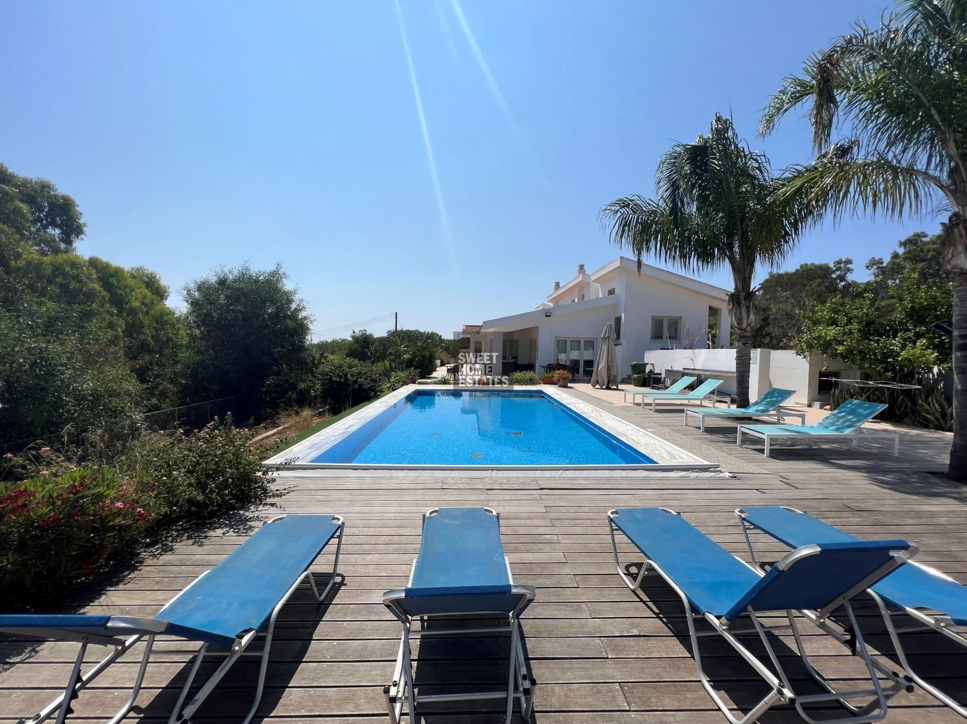The villas exteriors, offering a variety of seating areas that allow you to embrace the breathtaking surroundings. A private swimming pool and BBQ area provides the perfect scenery for entertaining your friends and family creating unforgettable moments. The outdoor living space offers a beautifully maintained Mediterranean gardens, mature trees, vibrant flowers, as well as mature hedges that ensure utmost privacy.