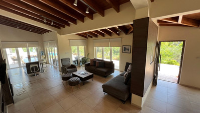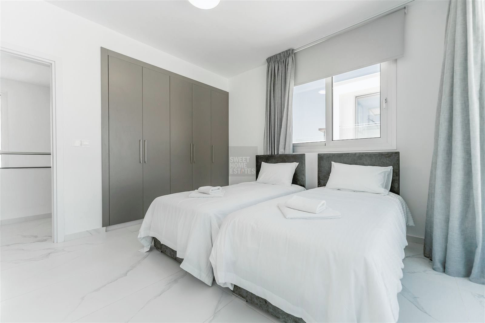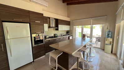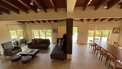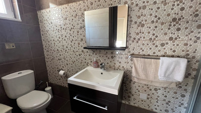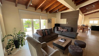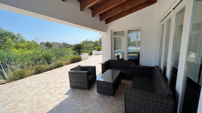 This amazing villa with plenty of natural light throughout ideal for people searching for a carefree vacation under the sun and stars features open plan kitchen, living/dining area that leads directly onto the outside pool terrace. Two bedrooms with built in wardrobes sharing one good size of a walk in shower room completes the ground floor area. First floor, 3-spacious bedrooms with built in wardrobes whilst master bedroom enjoys an en suite, the other 2-bedrooms sharing one good size of a shower room. Villa benefits from its private roof terrace with amazing sea views and the fact its attached to the green area offers more privacy makes it even more attractive.