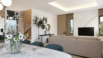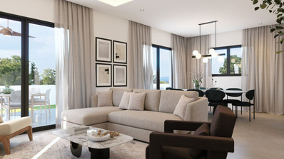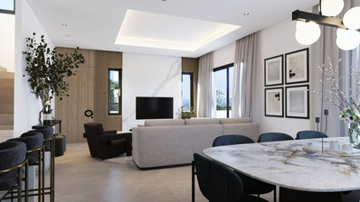 The exteriors, with plenty of spaces around ideal for alfresco dining by the pool terrace. Villa is fully equipped and benefits from its corner position attached to the green area