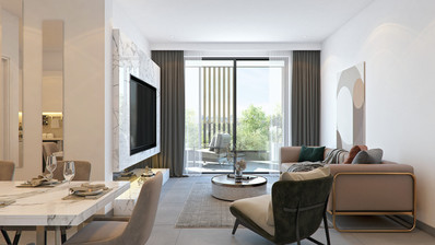 Carefully positioned to ensure privacy, the apartment is designed to meet the demands of modern living while capturing the essence of Mediterranean elegance. Step inside to discover interiors defined by earthy tones, natural materials, and a minimalist aesthetic that creates a warm and calming atmosphere.