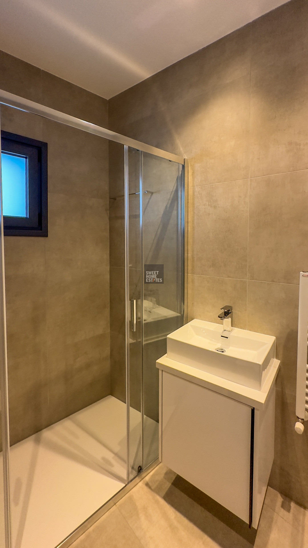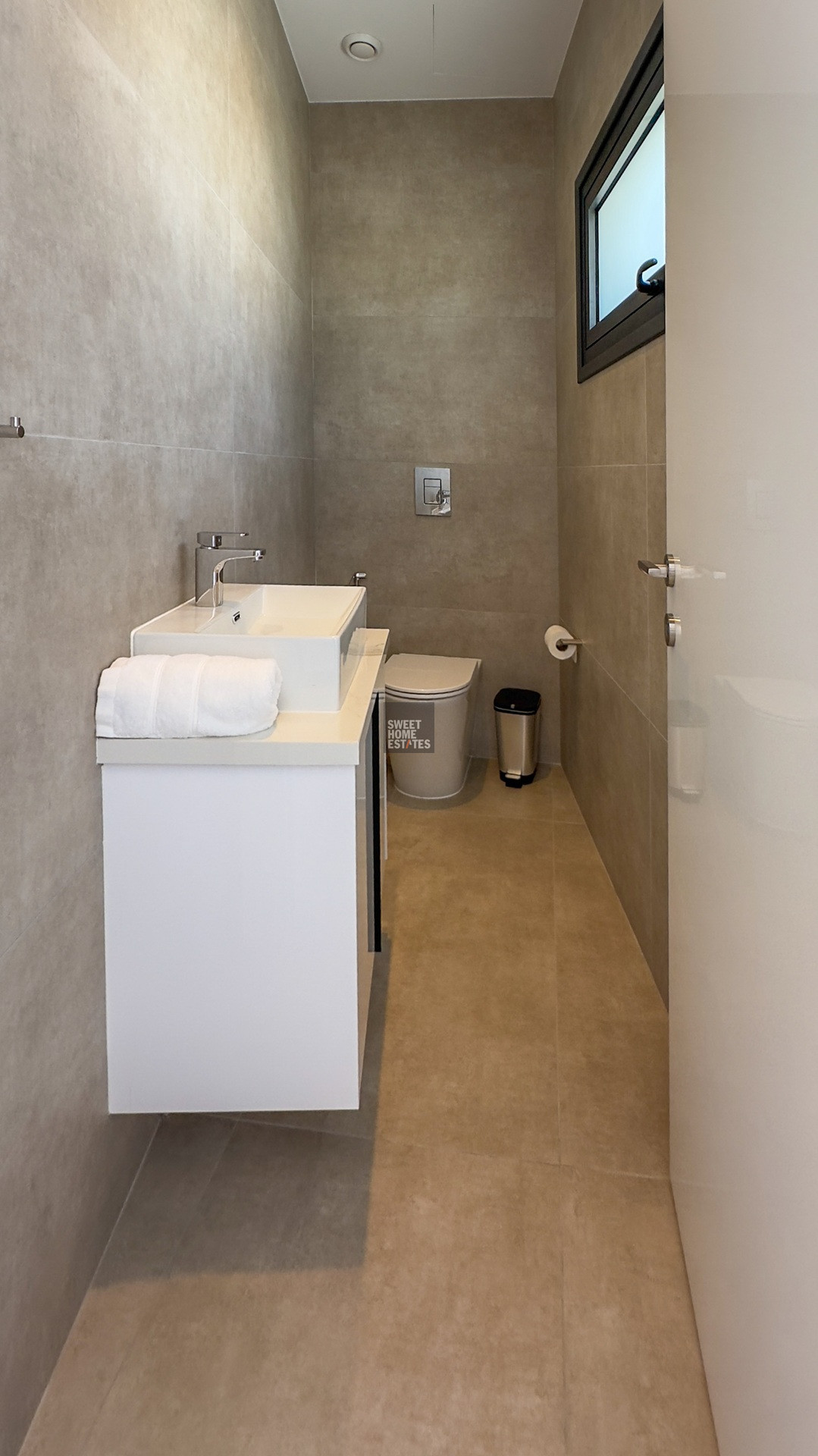 On the ground floor, sophistication unfolds in a seamless open plan that blends a state-of-the-art kitchen, spacious dining area, and inviting living room. A guest WC adds convenience, while floor-to-ceiling glass doors open to a sun-drenched deck with a private pool and jacuzzi. The elegant lounge area creates the perfect setting for enjoying cocktails while gazing across the turquoise waters of the Mediterranean.