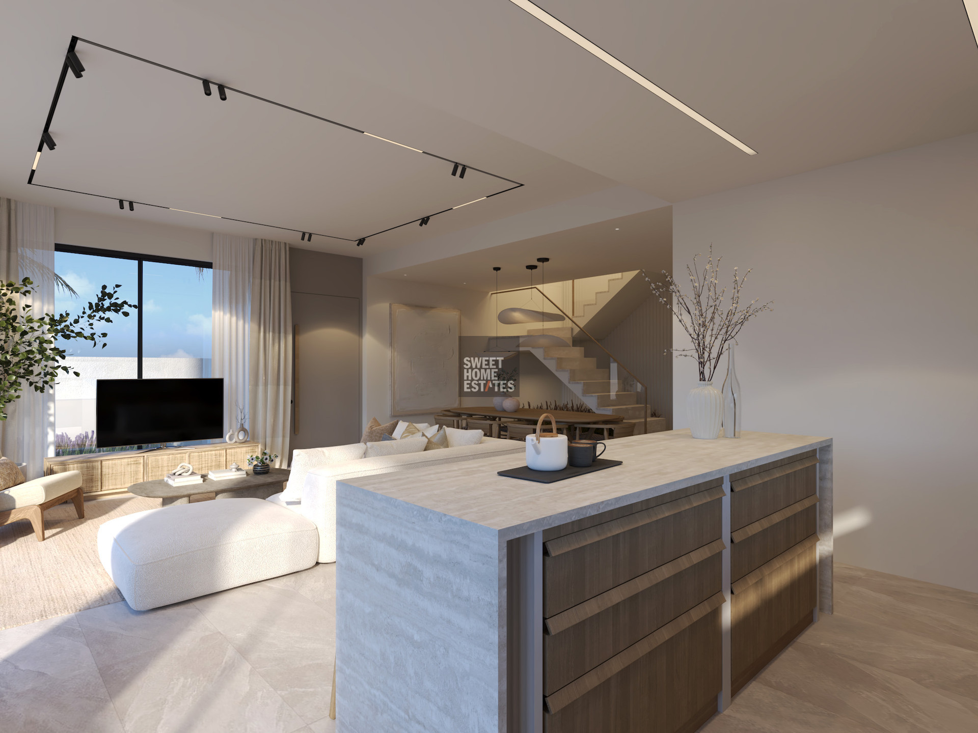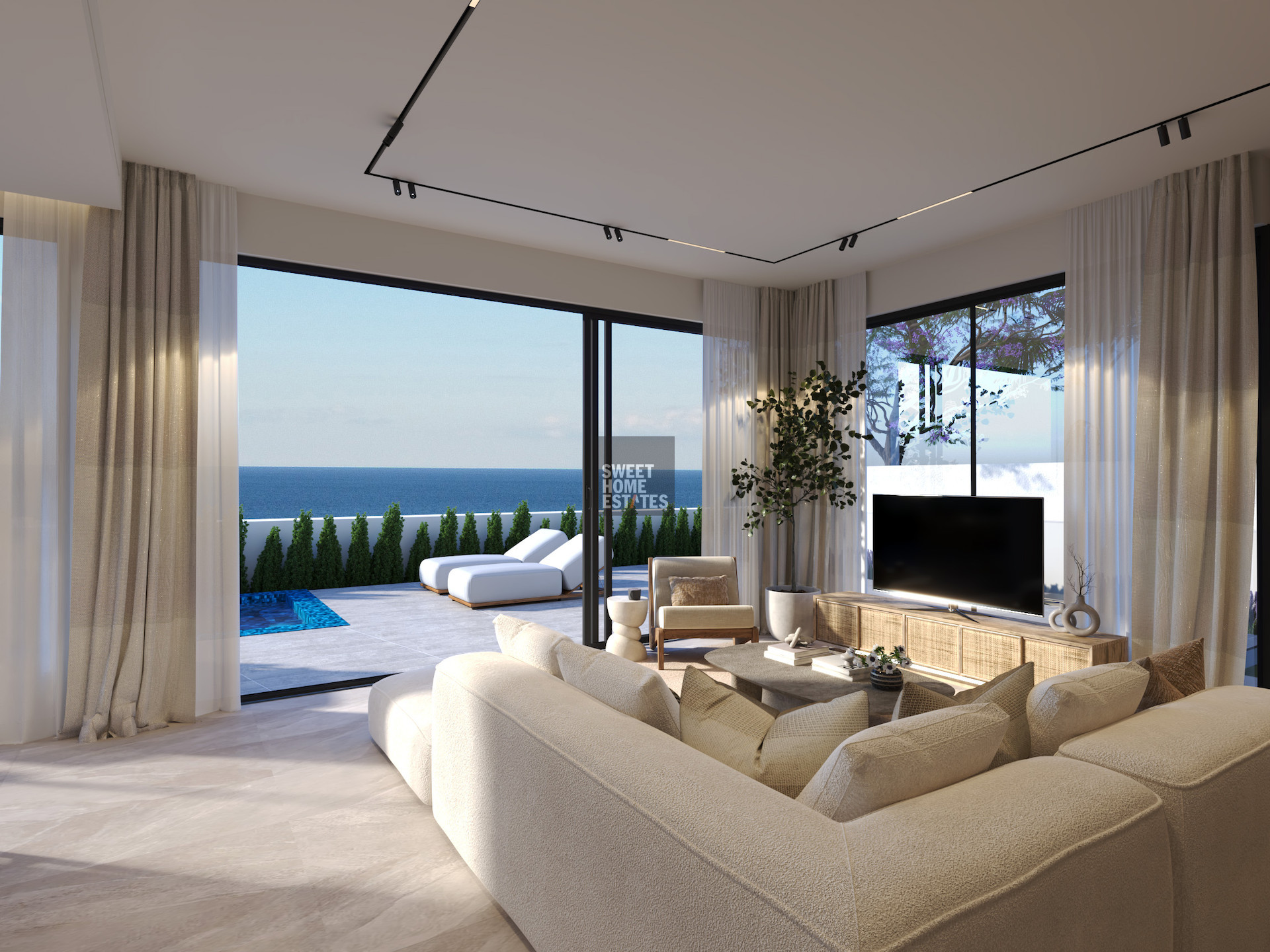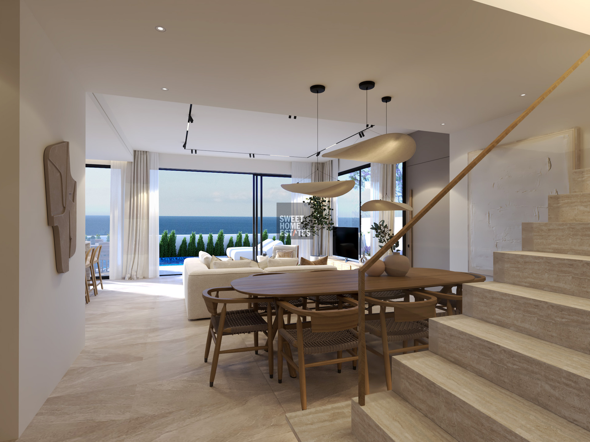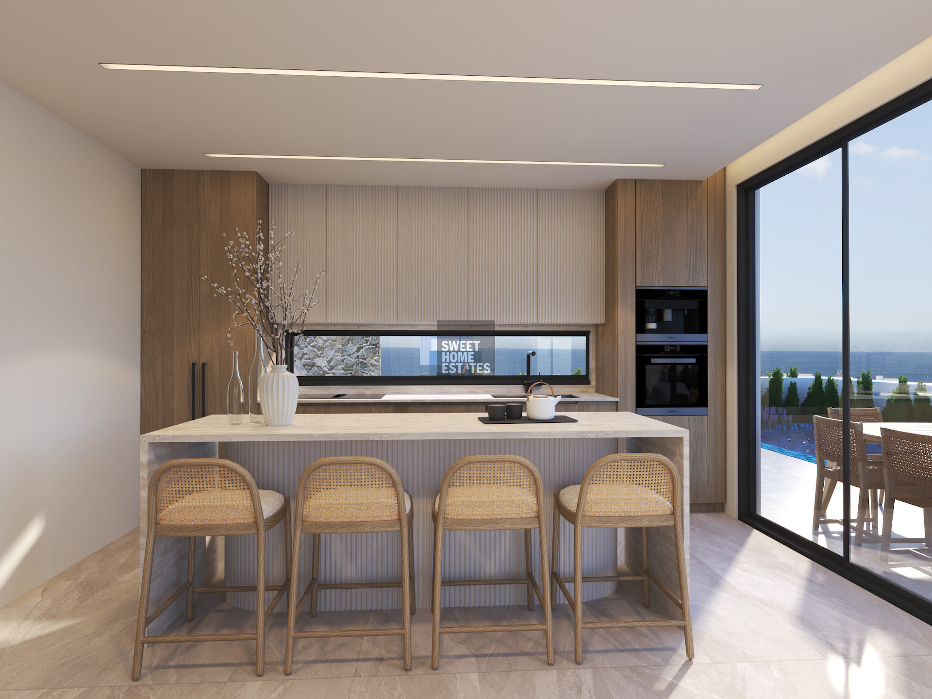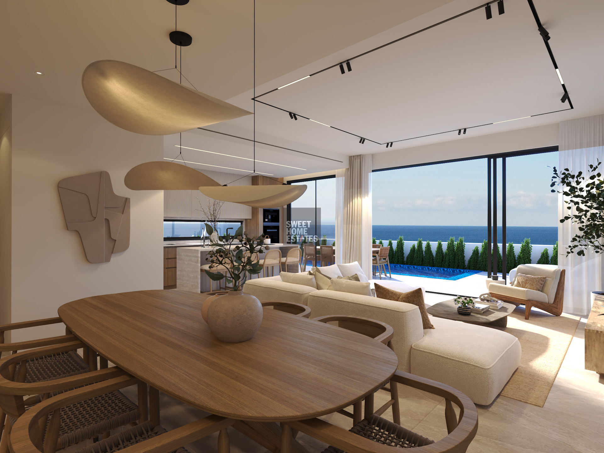 The villa offers a private overflow swimming pool, an expansive roof terrace with breathtaking 360° panoramic views of Protaras and the Famagusta skyline, and elegant open-plan interiors finished to the highest standards. With private parking and beautifully landscaped gardens, every detail has been carefully considered to provide both comfort and sophistication.