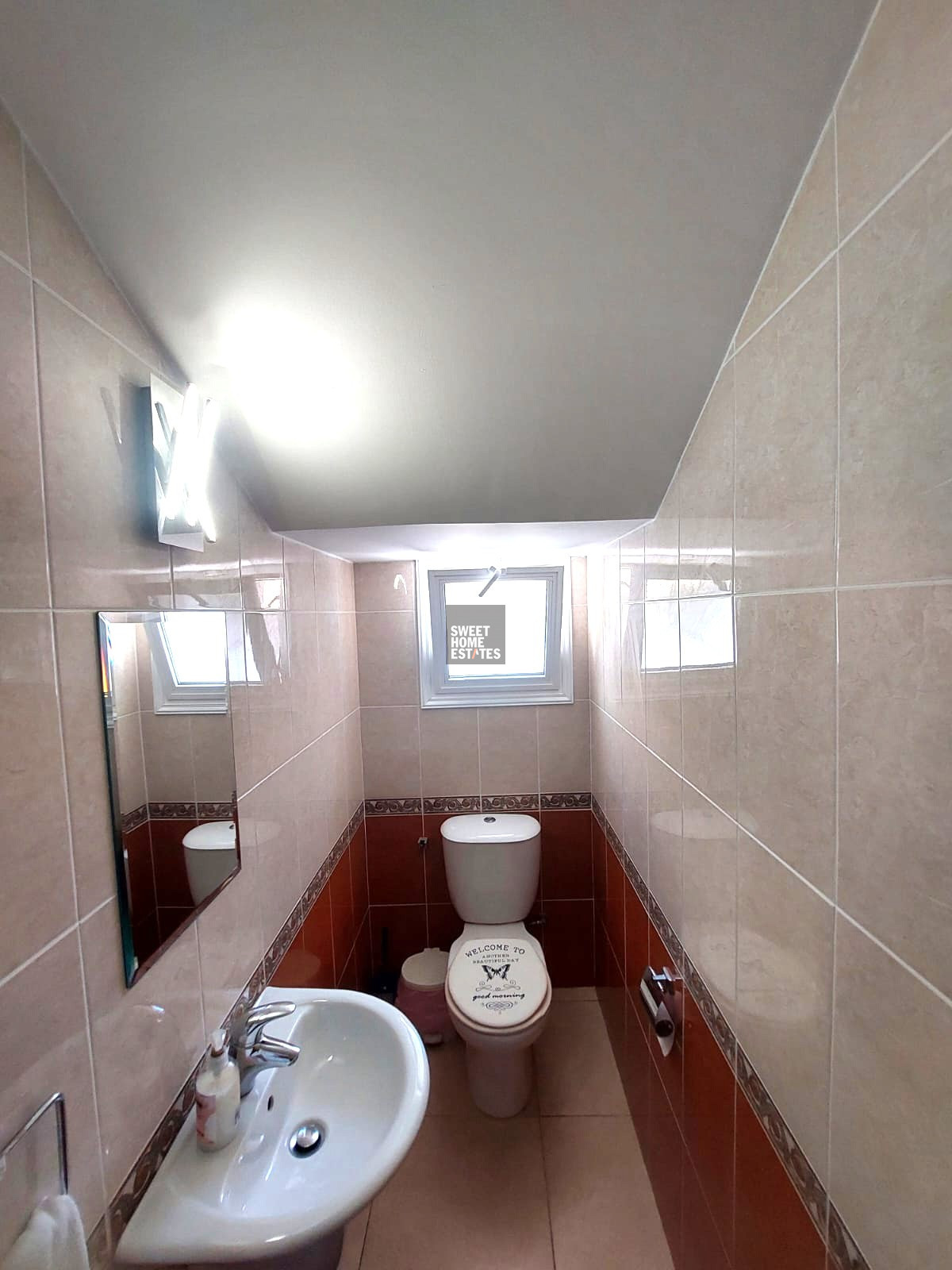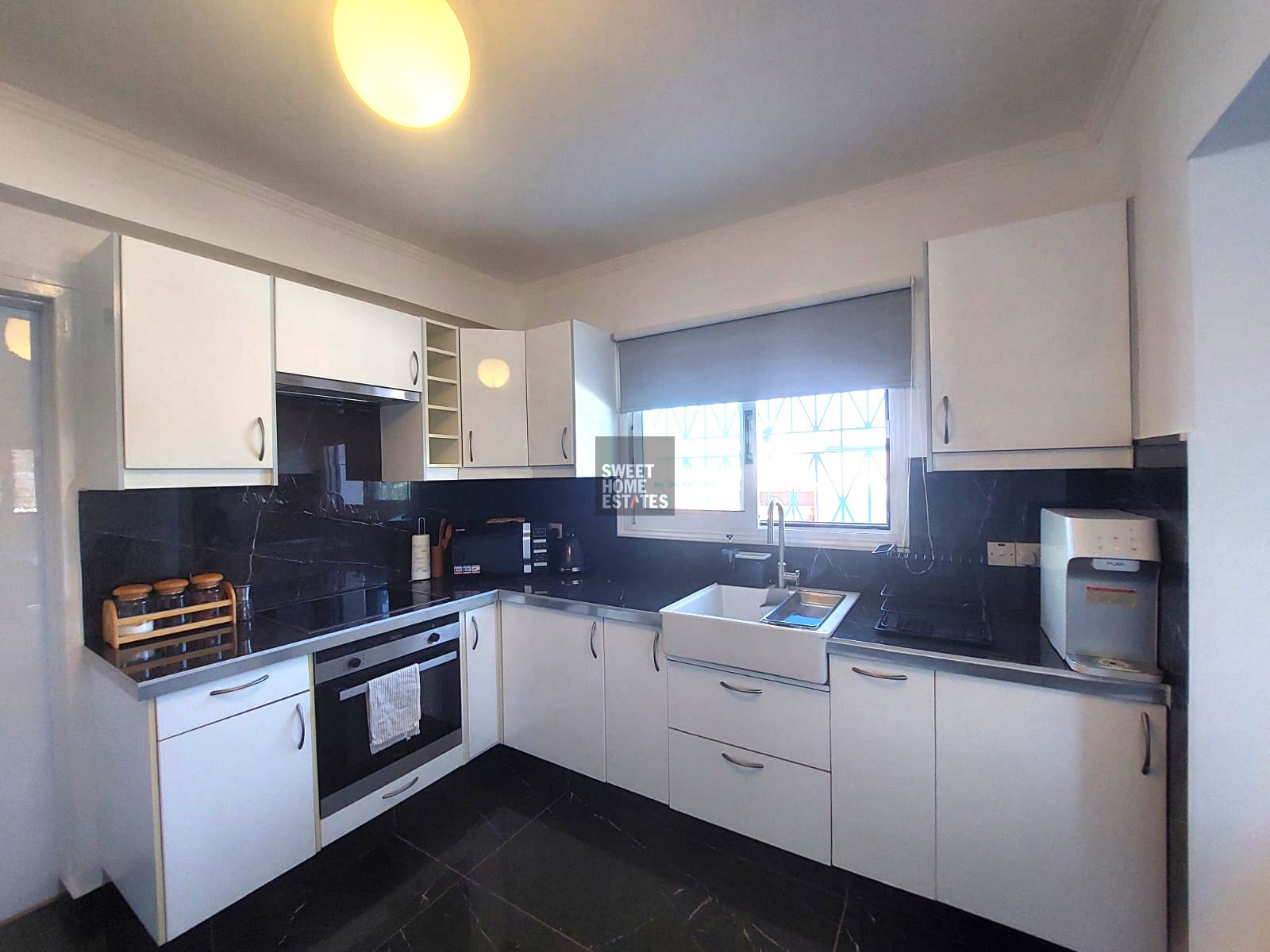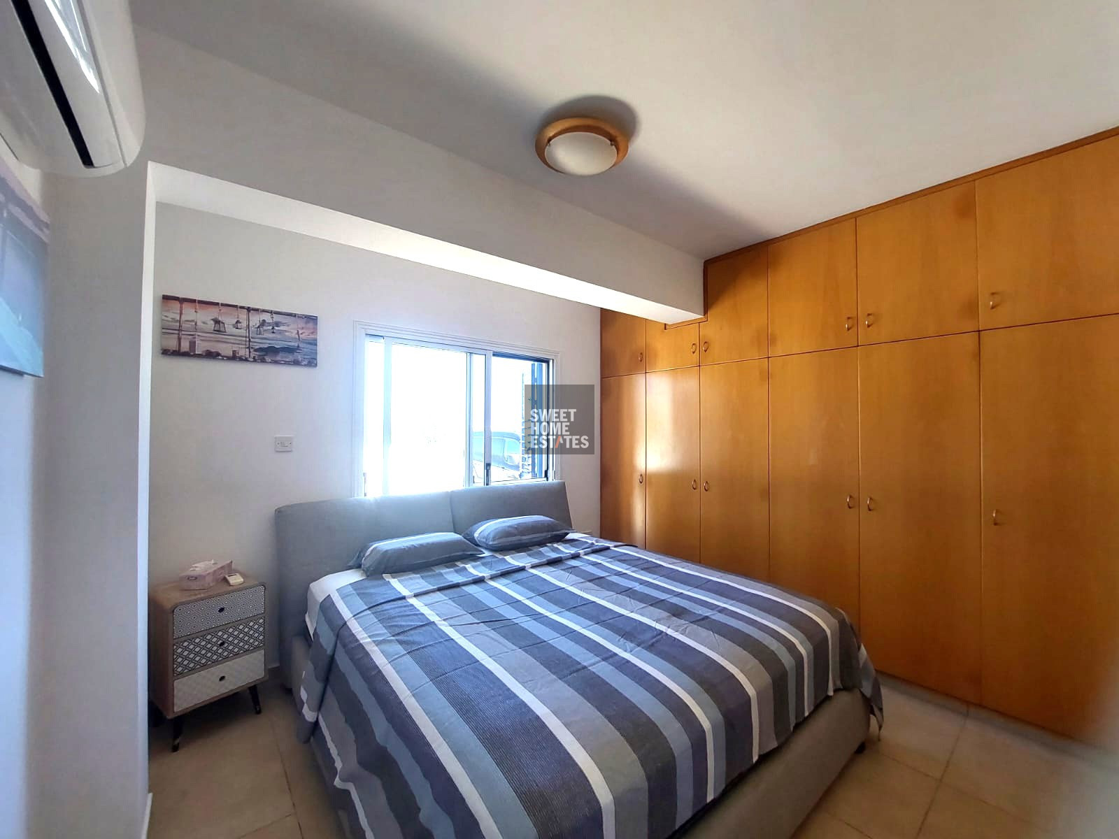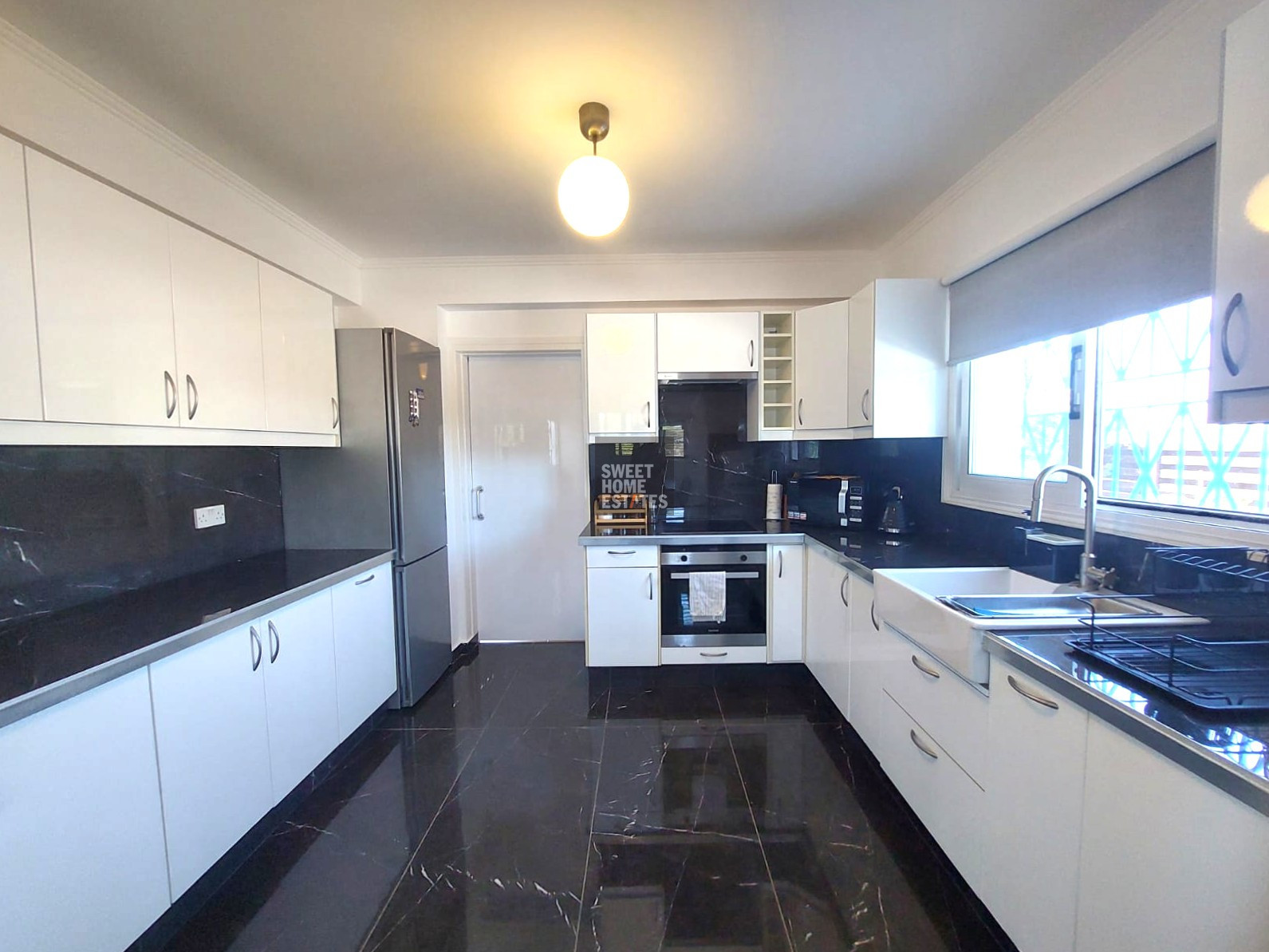 Upstairs, the master bedroom boasts en suite with a double shower. The two additional bedrooms are served by a large family bathroom, and each has its own private balcony—one overlooking the swimming pool, the other offering sweeping views of the Protaras coastline.