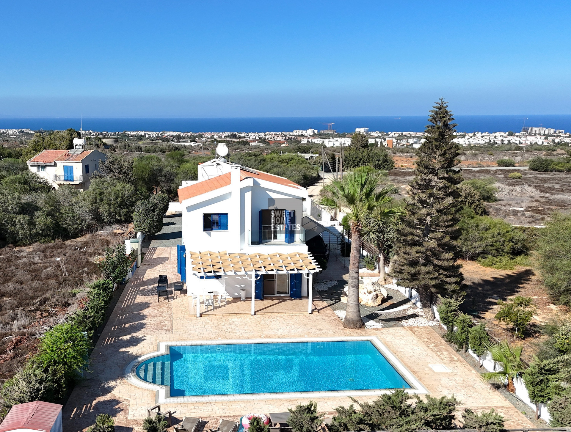 Perched high above the sought-after Protaras coastline, this stunning four-bedroom villa offers breathtaking panoramic sea views, complete privacy, and an enviable lifestyle. Set on a large elevated plot in one of the area’s most exclusive neighborhoods, the property combines elegant living with modern comforts, all just minutes from the vibrant Protaras resort centre.