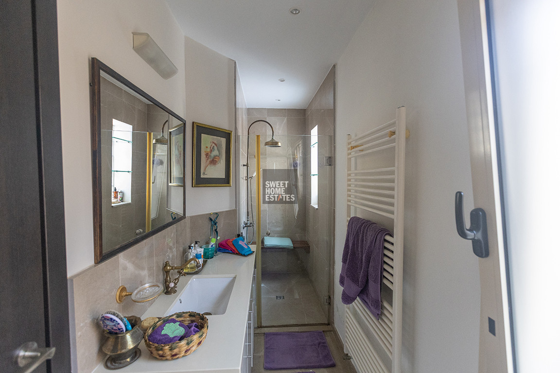 Upstairs, you’ll find two generously sized bedrooms and a large family bathroom with a bathtub. The exceptionally spacious master bedroom opens onto a private balcony with breathtaking panoramic countryside views.