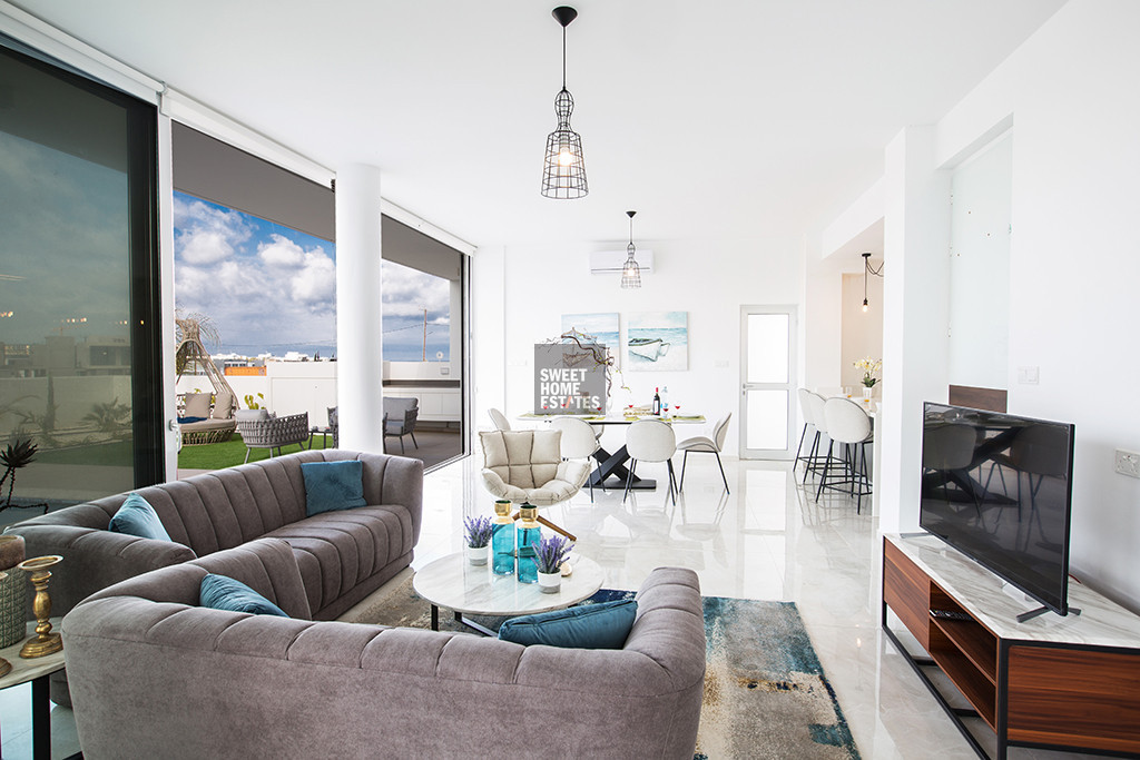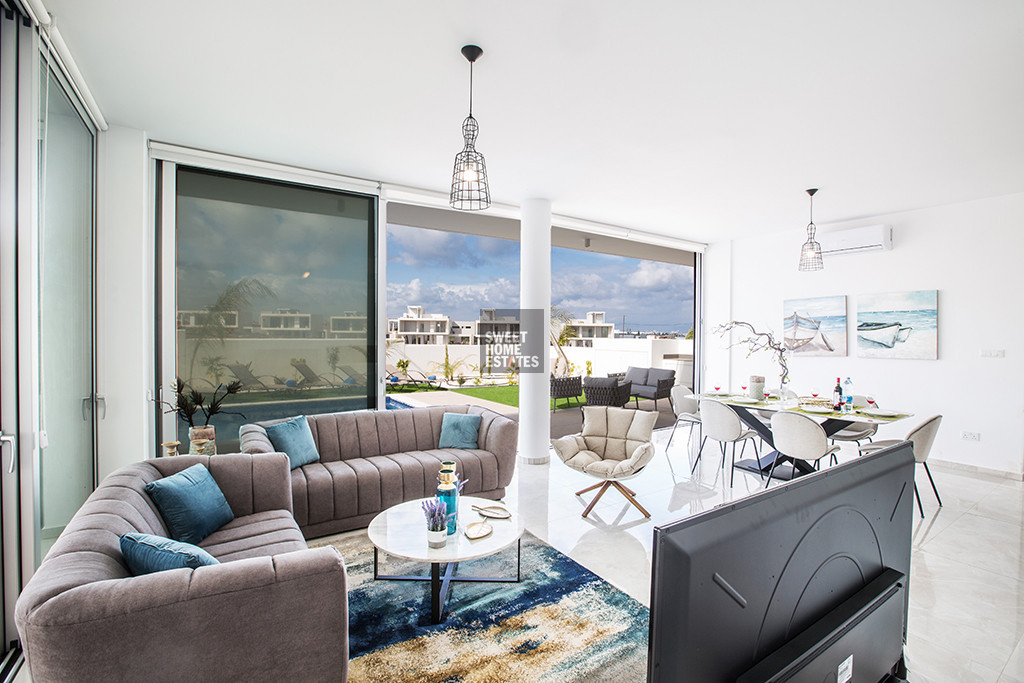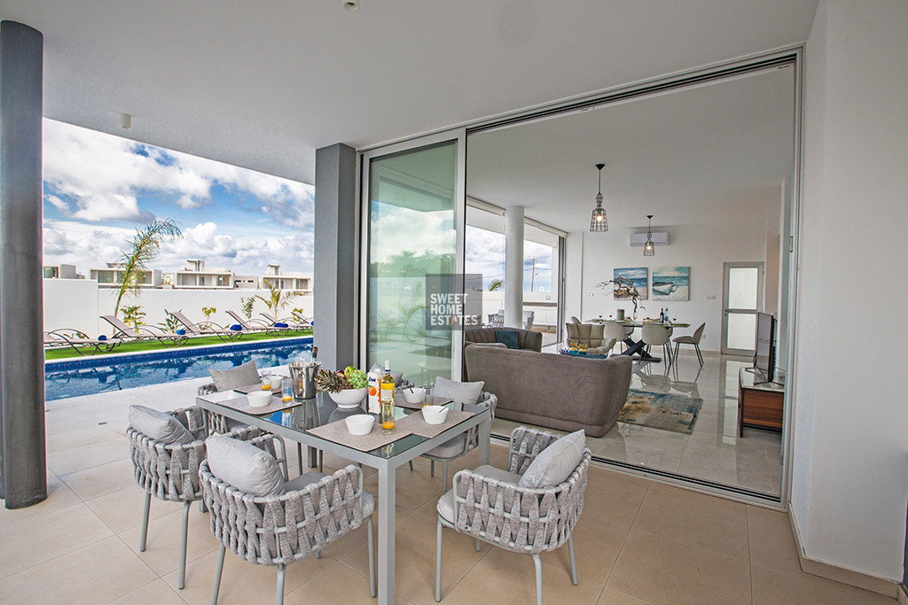This supreme, contemporary villa is elegantly presented, finished to high specifications offers a special combination of action and calm by being moments from the heart of Protaras without undergoing the commotion of living there.