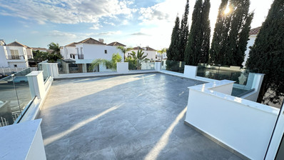 The villa consists of three spacious bedrooms, with fitted wardrobes, a master ensuite, a balcony with fantastic views, and a large family bathroom. Downstairs there is a chic and stylish kitchen, dining area and a bright spacious and welcoming living room with plenty of large windows leading you outdoors to the sunny pool terrace.