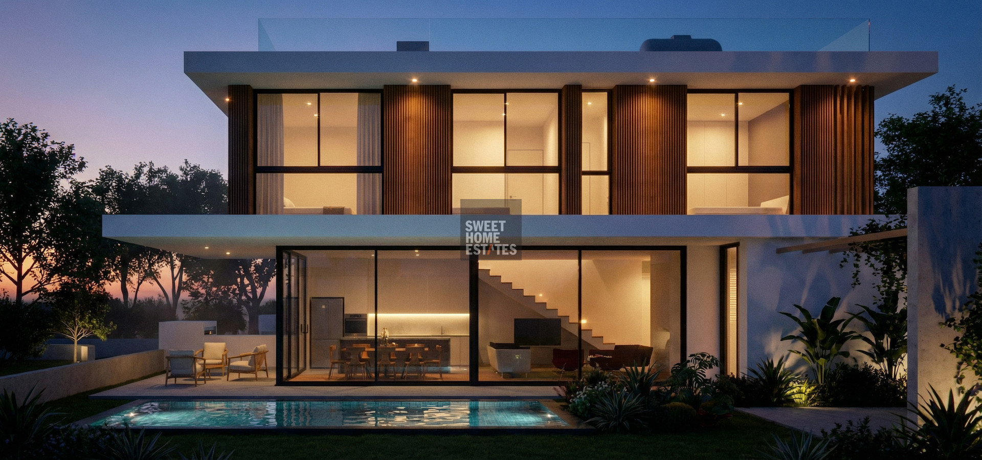 Bathed in natural light, the villa features elegant open-plan interiors enhanced by natural materials and clean architectural lines. The kitchen connects seamlessly with the spacious living and dining area, which flows directly onto a large terrace. From here, residents enjoy direct access to the private swimming pool and landscaped garden — perfect for relaxation, entertaining, and enjoying the Cyprus climate year-round.