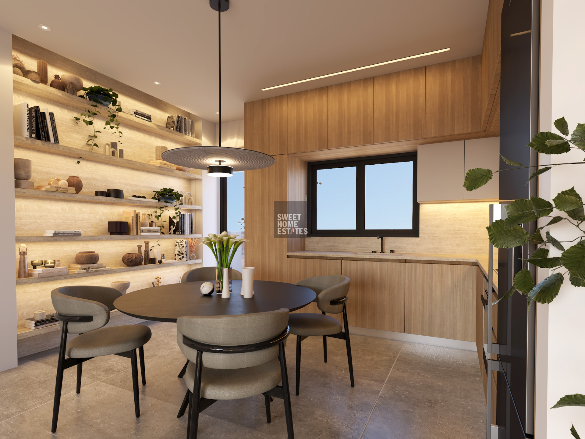 The apartment features a spacious bedroom, a well-designed bathroom, and an open-plan living and dining area that maximizes space and functionality. Large windows allow plenty of natural light to fill the interior, enhancing the modern layout and high-quality finishes throughout.