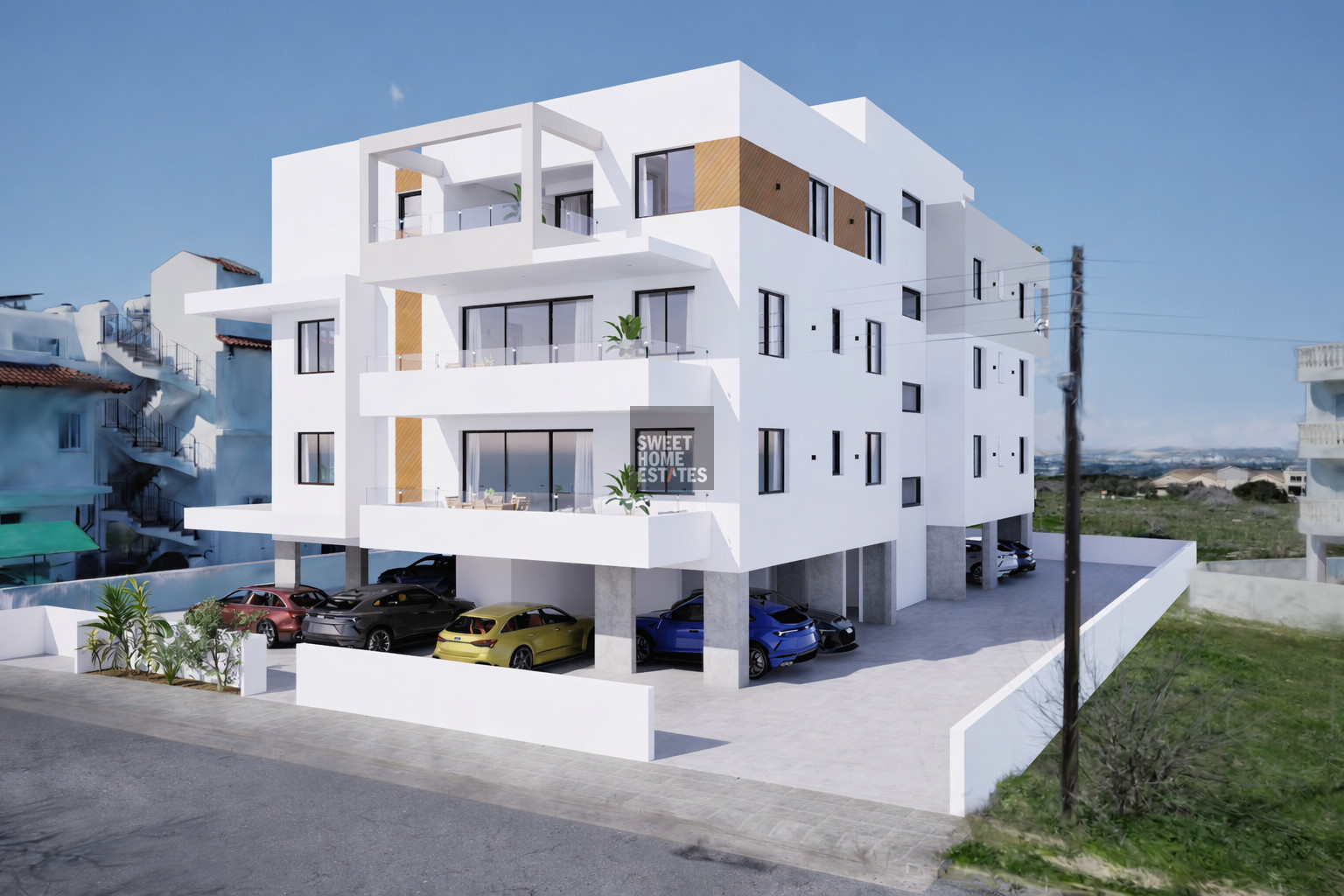 The project itself consists of 1 three-bedroom apartment, 6 two-bedroom apartments, and 5 one-bedroom apartments, all carefully planned to take advantage of the area’s elevated position and panoramic sea views. Each residence is designed with contemporary finishes and functional living spaces that combine comfort with modern style.
