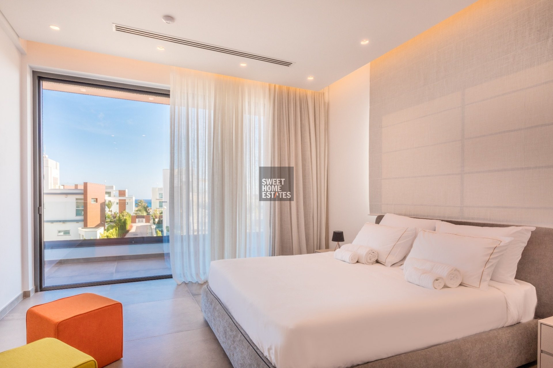 This stunning villa is situated in a coveted location on a pristine stretch of beachfront, just a short distance from the bustling center of Ayia Napa. Surrounded by serene natural beauty and the sparkling turquoise waters of the Mediterranean Sea, this three-level property is a true oasis of tranquility.