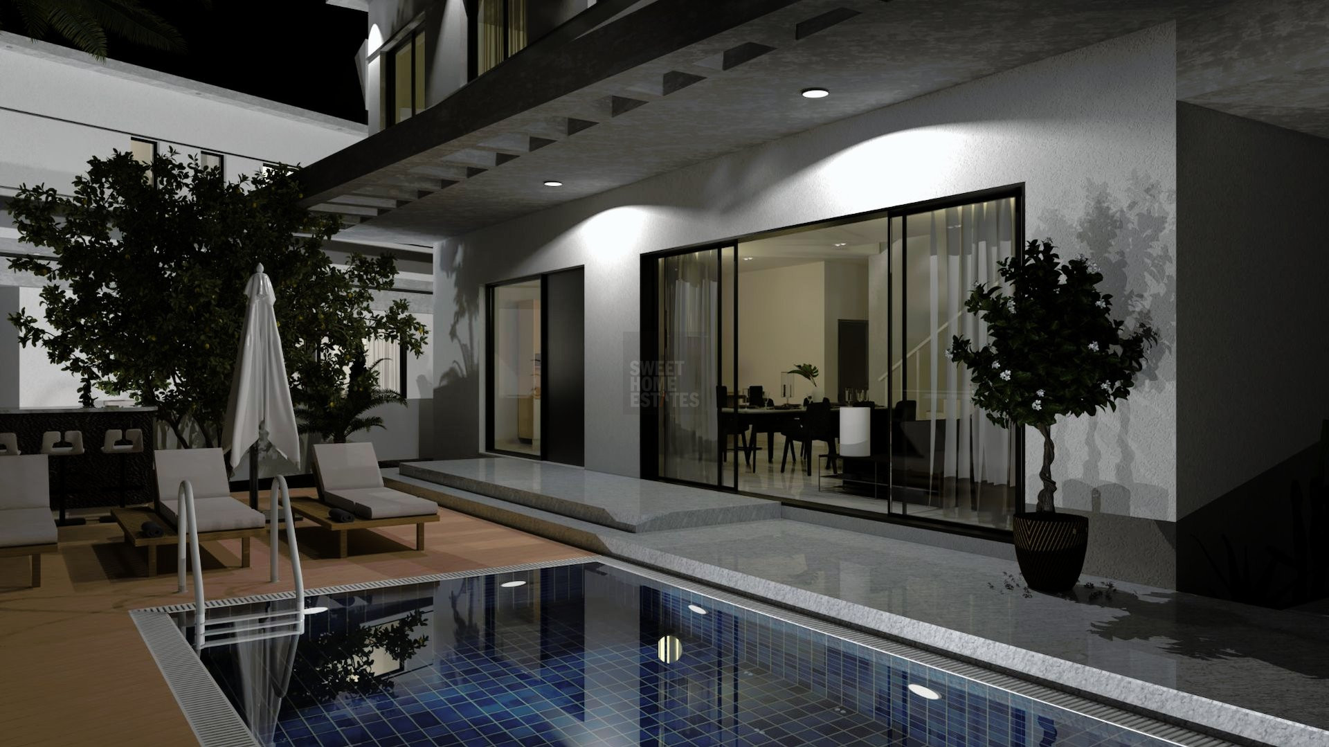 Upon entering, you're welcomed by a spacious open-plan design that seamlessly connects the kitchen, living, and dining areas, all finished to the highest luxury standards. The villa is bathed in natural light, thanks to double-glazed windows, creating a bright and inviting atmosphere throughout.