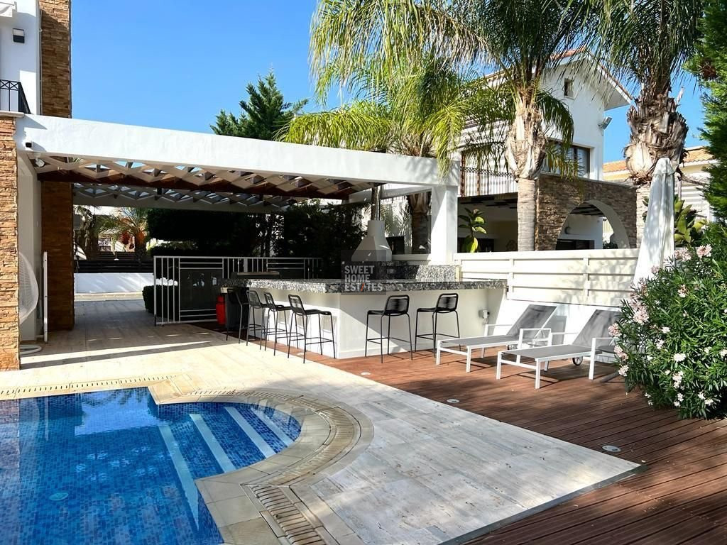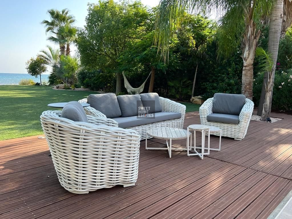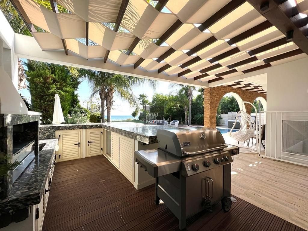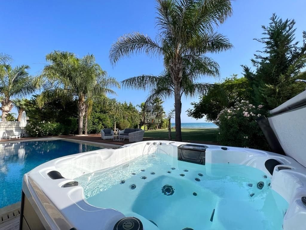 The outdoor area is equally impressive, centered around a stunning overflow swimming pool and a private jacuzzi, ideal for enjoying Cyprus’s endless summer months. A covered outdoor kitchen makes entertaining a breeze, while multiple lounging and dining areas cater to every mood—whether basking in the sun or unwinding in the shade. The beautifully maintained lawn leads directly to the seafront, offering an unbeatable setting to enjoy the island’s spectacular sunsets from the comfort of your own home. The property also includes covered and uncovered parking for up to five vehicles.