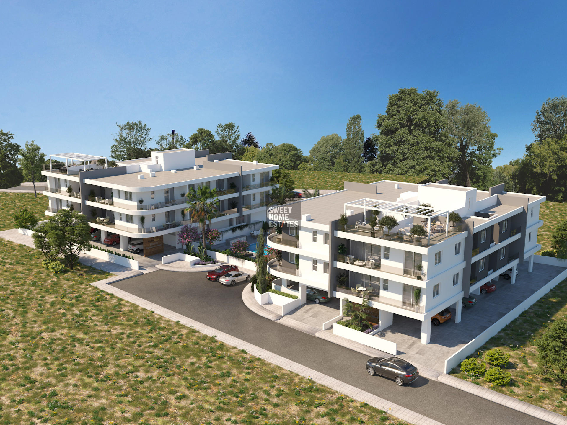 •A grand communal swimming pool invites residents to indulge in leisurely swims and bask in the Mediterranean sun.