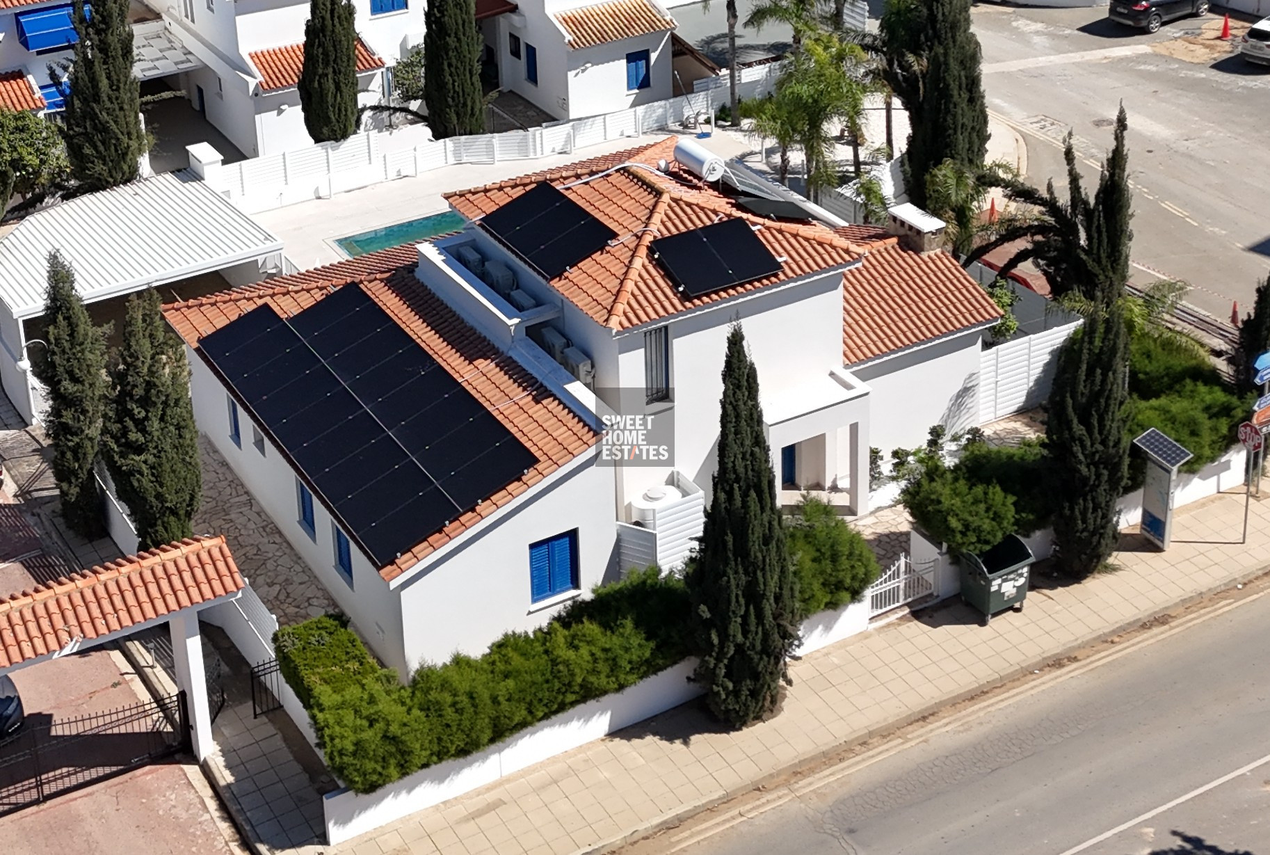 The outdoor areas are equally impressive, featuring a mature landscaped garden, large private swimming pool with massage power jets ,covered parking for two cars, outdoor shower, and a barbecue area perfect for entertaining. The villa is also equipped with photovoltaic panels, improving energy efficiency and reducing running costs.