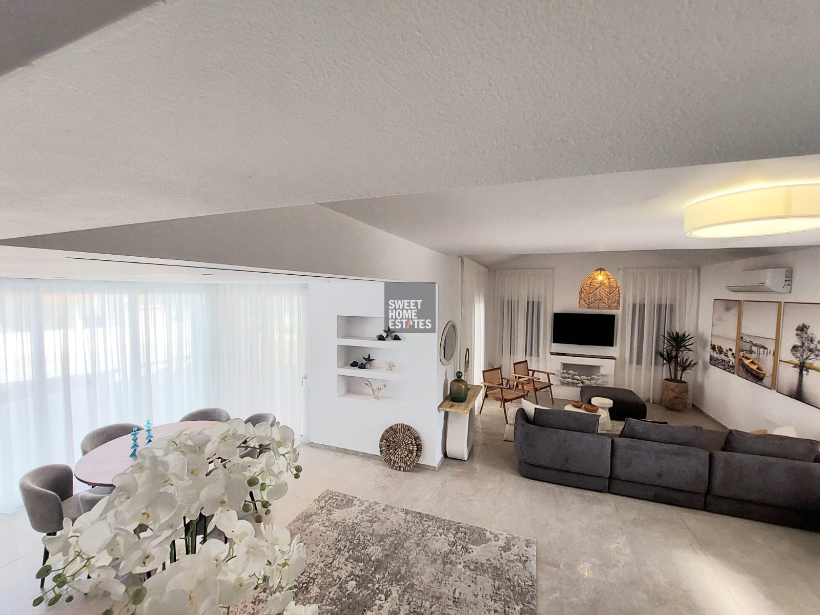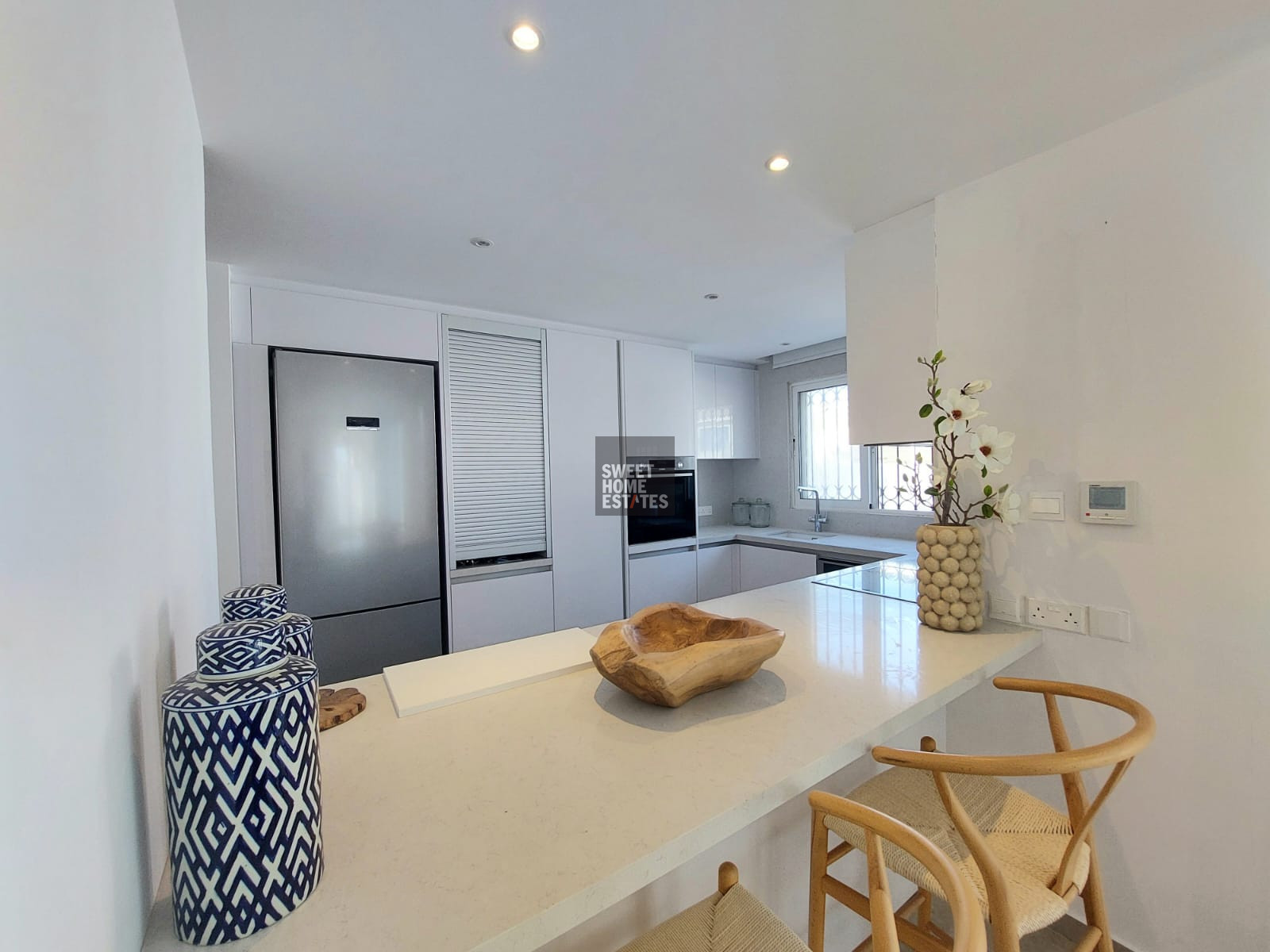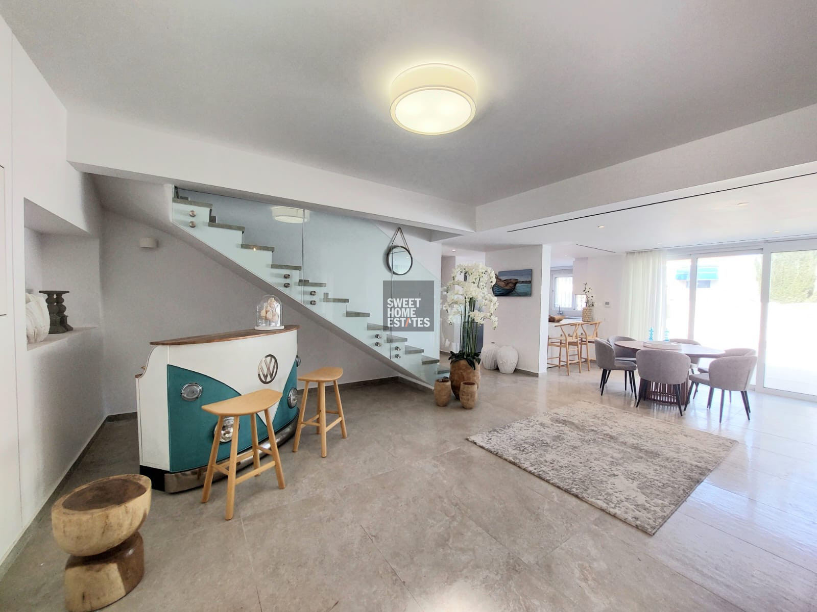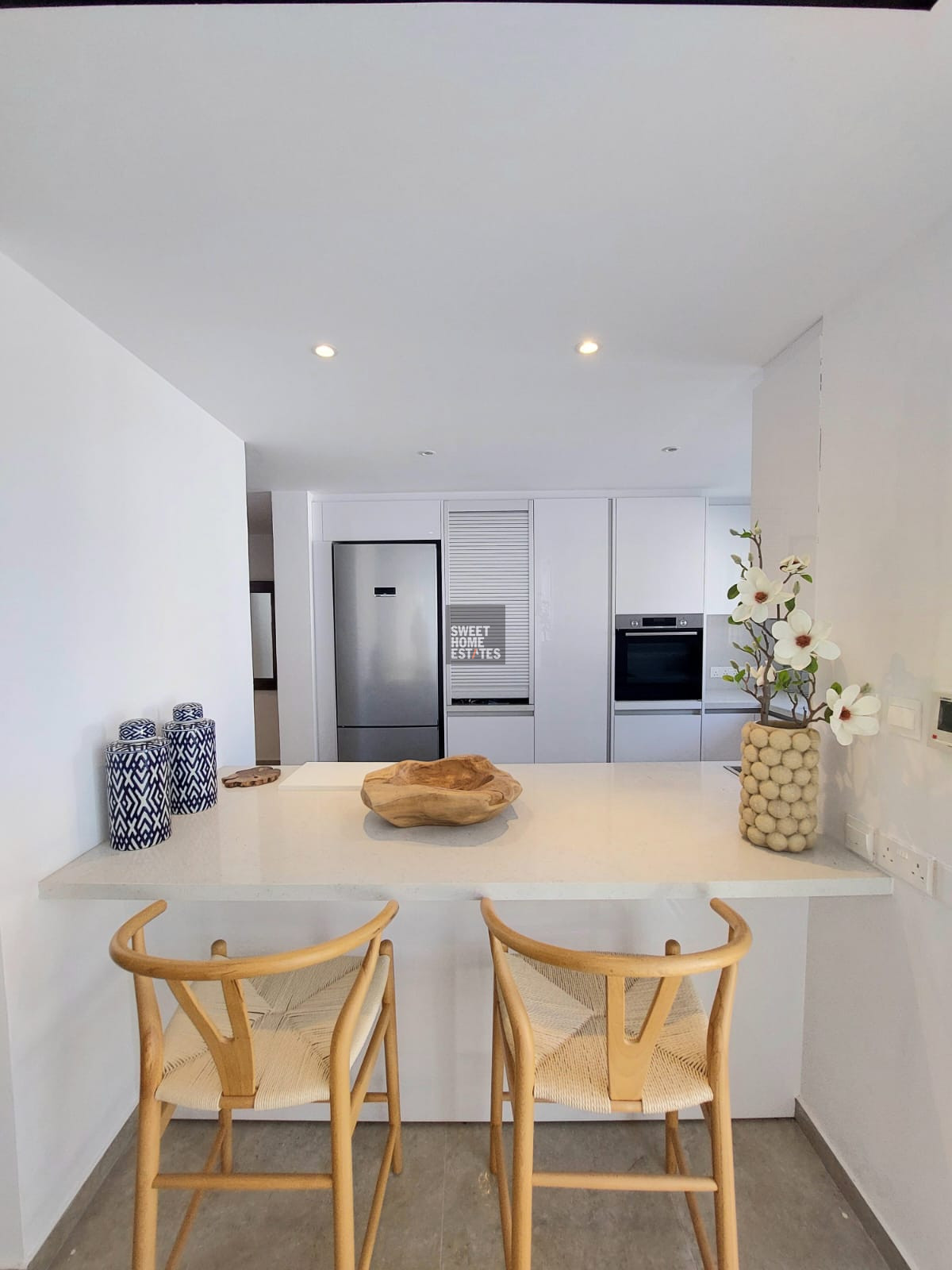 The villa was fully renovated only two months ago and has been beautifully furnished to the highest standards, offering a refined living environment designed for modern coastal living.