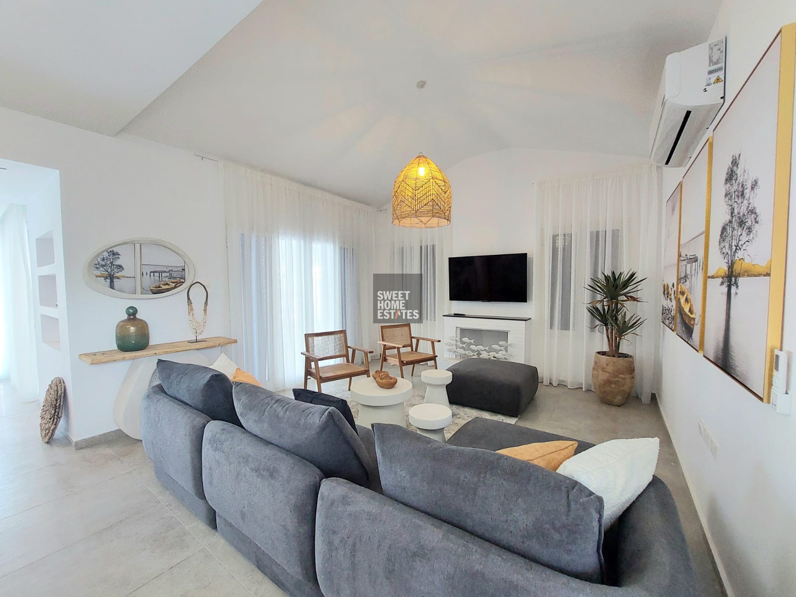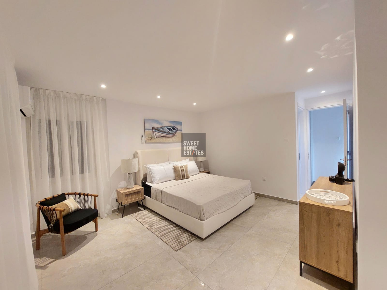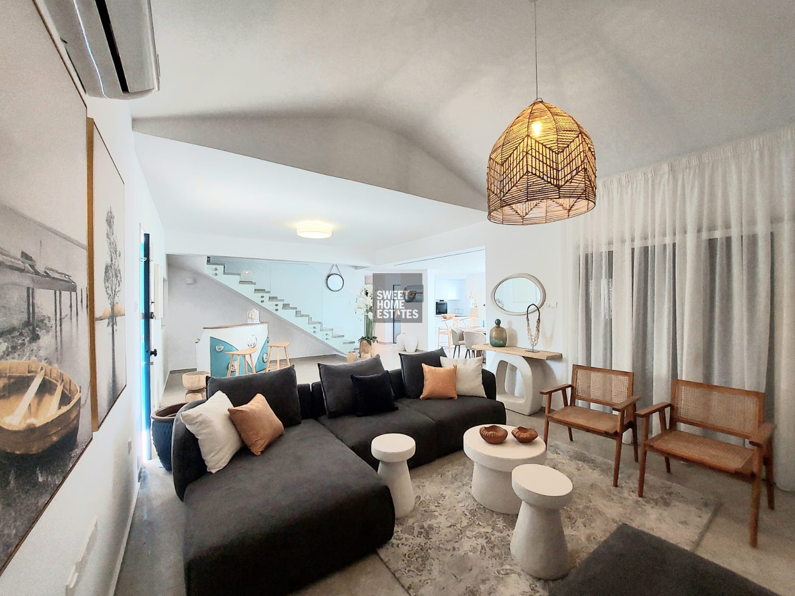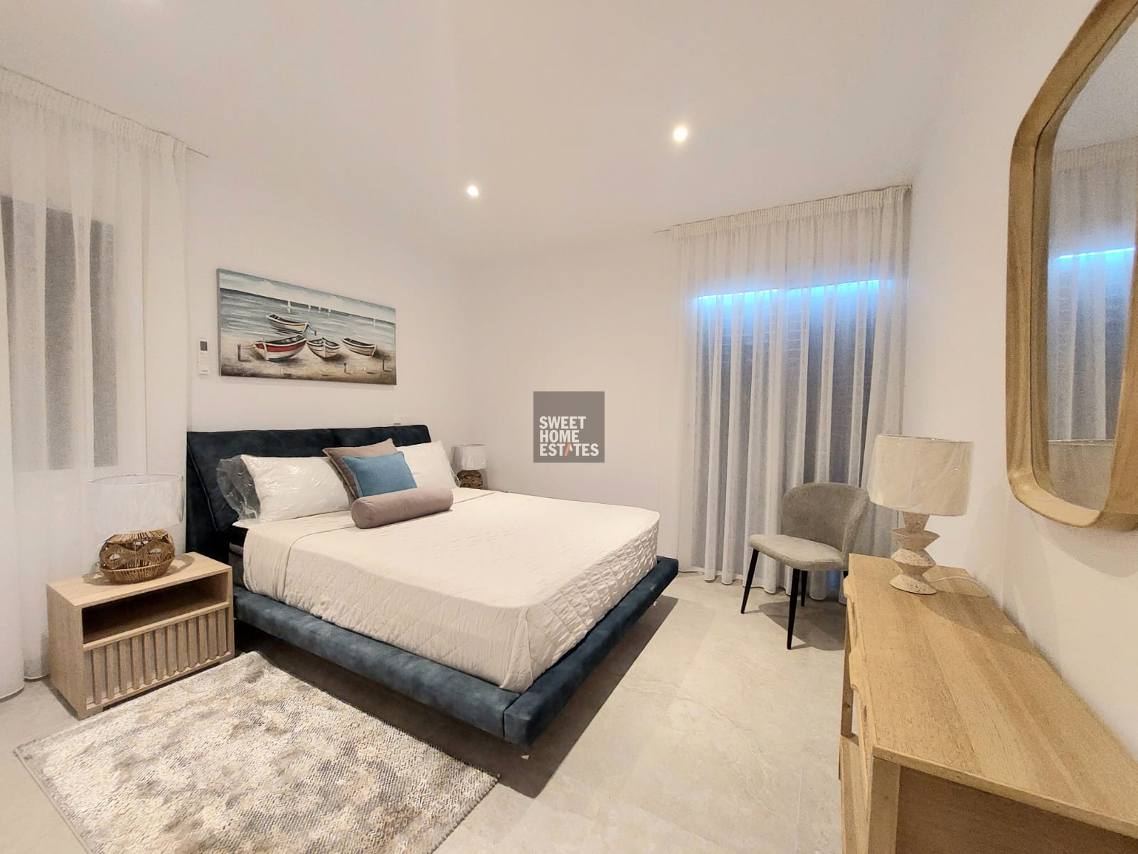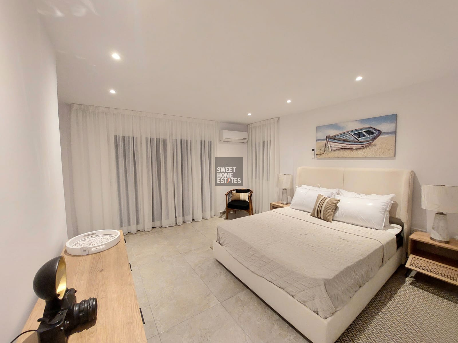The villa was fully renovated only two months ago and has been beautifully furnished to the highest standards, offering a refined living environment designed for modern coastal living.