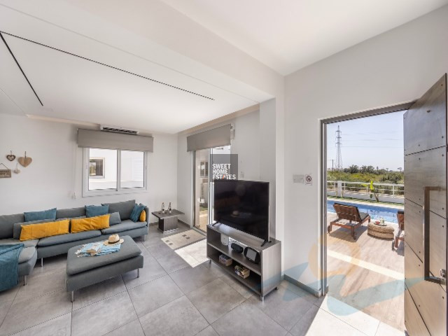 Located just a short drive from Ayia Napa's renowned beaches and resorts, the villa also boasts easy access to the highway, making it a perfect base for exploring the surrounding area. Outside, enjoy a private pool and a landscaped garden, ideal for relaxing in the sun or entertaining.